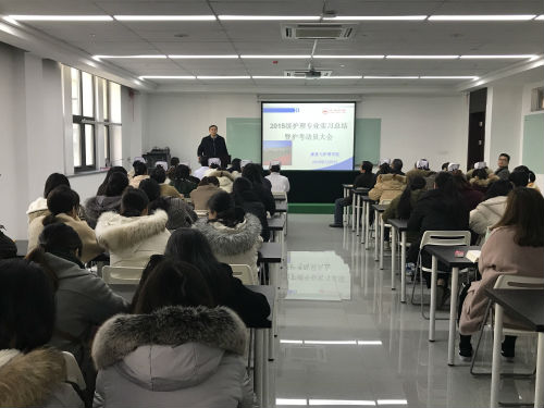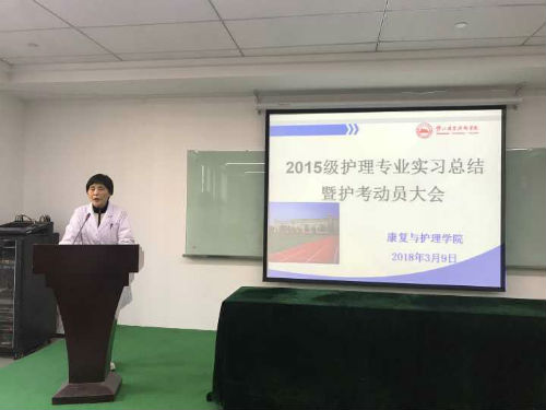 随后,护理系主任胡晓燕发表了热情洋溢的讲话,并从几个方面向大家提出了希望和要求:一是要有自己的人生目标,大家要把护考作为检验自己大学生活的一个目标,并为之奋斗。二是要从现在起,争分夺秒,心动不如行动,养成今日事、今日毕的习惯,全身心投入到学习中去。三是要掌握好的学习方法和记忆方法,科学合理地学习和记忆。她还建议学生建立错题库,不断查漏补缺。希望学生和老师一道,一同打赢护考这场攻坚战。